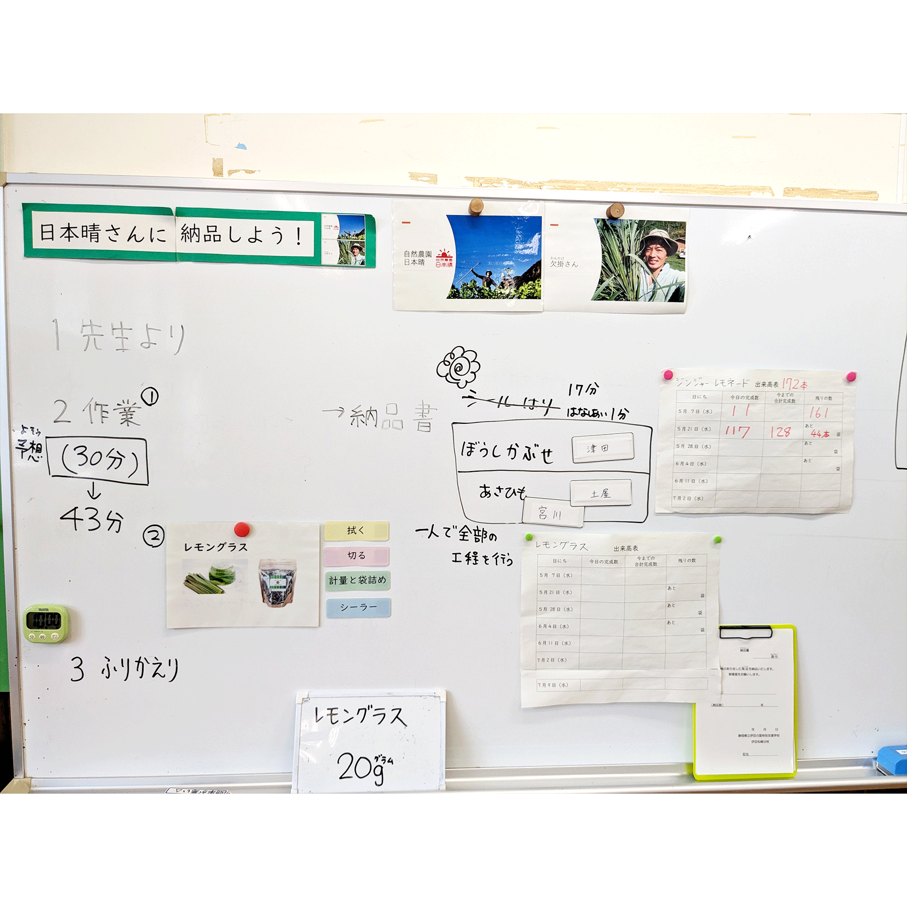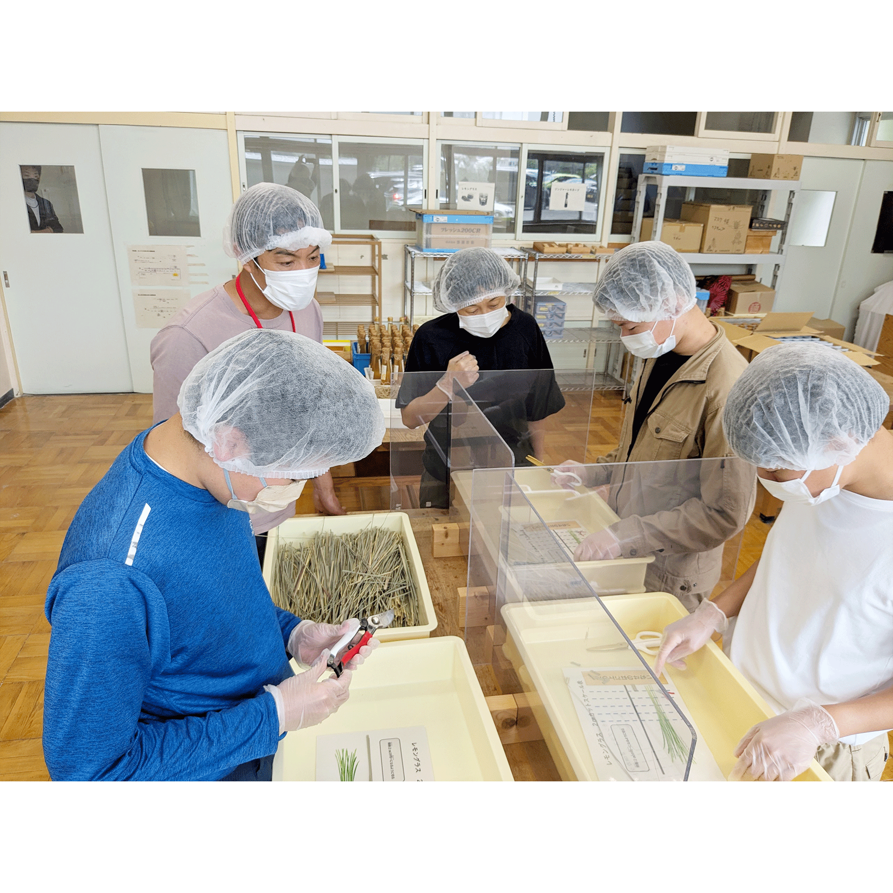 伊豆松崎分校学校の先生が、実習としてもっと社会性のある作業がないかと探されていると聞き、うちのレモングラスの加工のお話をしたところ、レモングラスには様々な作業があってぴったりだということで選んでくださいました。